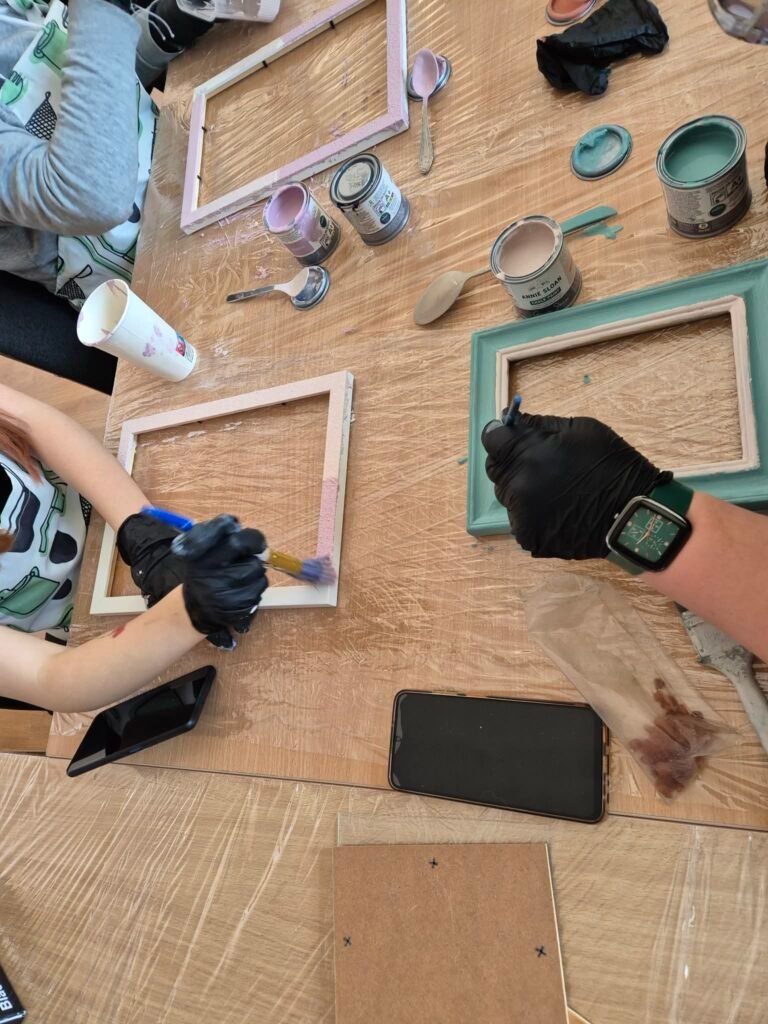 Edukacijos dalyviai turėjo unikalią progą prikelti naujam gyvenimui senus nuotraukų ir paveikslų rėmelius. Autorė susirinkusius mokė ne tik techninių subtilybių – kaip taisyklingai išardyti ar nuvalyti senus gaminius, bet ir drąsino eksperimentuoti su spalvomis bei tekstūromis.
